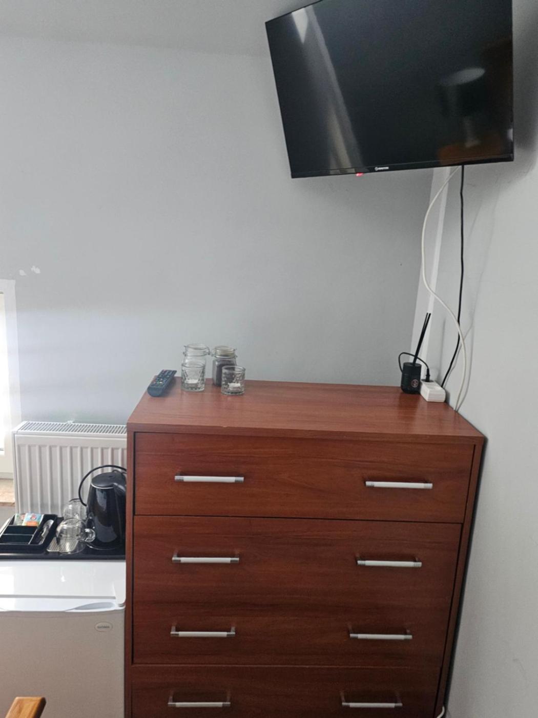 Pokój Dwuosobowy z widokiem na ogród. Providing free toiletries, this double room includes a private bathroom with a shower. The double room provides a flat-screen TV, a tea and coffee maker, a wardrobe and heating. The unit offers 1 bed. Pokój Dwuosobowy - 2 osobowy. Powierzchnia pokoju ok.: 20 mkw. ;